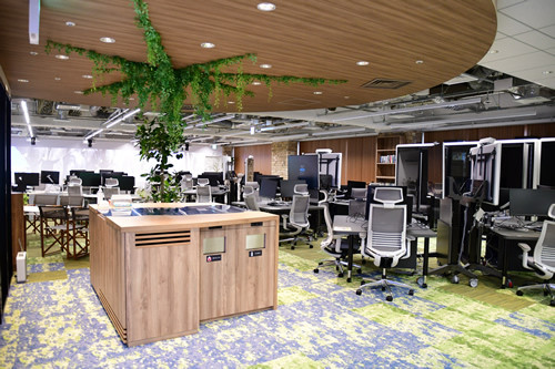 プログラマーにとって最適な執務環境を実現するべく、PHONE APPLIの本社オフィスビルの上階に構築したプログラマー専⽤のオフィスです。コロナ禍以前より、テレワークとオフィスワークをシームレスに融合させる"ハイブリッドワークプレイス"として企画を進め、2020年8⽉にオープンしました。