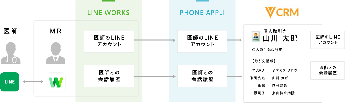 医療従事者のLINEとMRのLINE WORKSでのトークも可視化できるようになります。