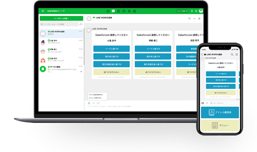 LINE・LINE WORKS間でのやり取りがSalesforce上にも残ることで、社内に情報を共有。