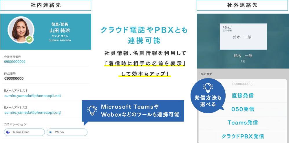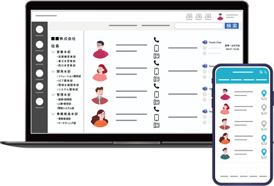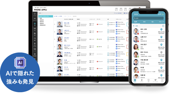 「名刺管理機能」で社外の連絡先もまとまり、共有が可能。