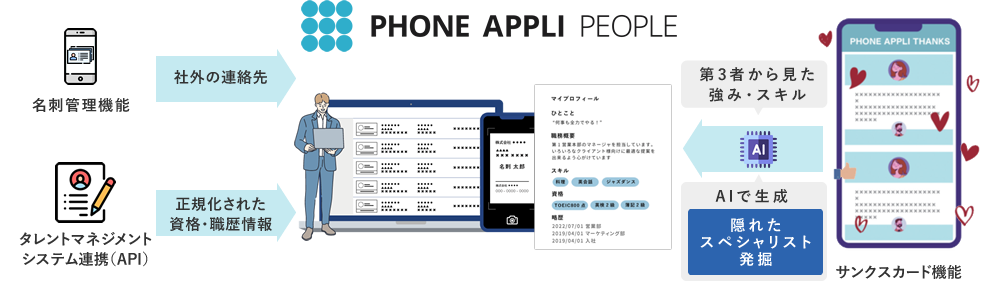 タレントマネジメントシステムの従業員情報をPHONE APPLI PEOPLEに連携させることで運用の効率化ができます。